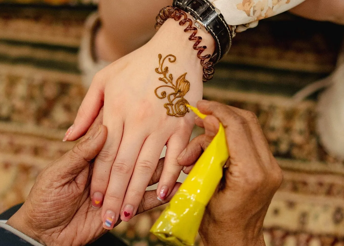 Experience traditional henna painting at Dubai Desert Safari where skilled artists create beautiful intricate designs on your hands arms feet or legs. Choose from various patterns that match your style and personality while learning about the rich history and cultural significance of this ancient art form. The friendly henna artists share fascinating stories and traditions making it both relaxing and educational. Henna painting offers a wonderful way to connect with Dubai’s diverse culture and heritage.