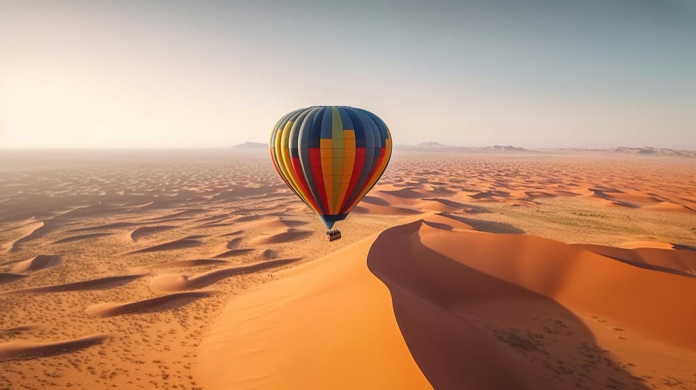 • Fly over the Dubai desert at sunrise in a premium hot air balloon